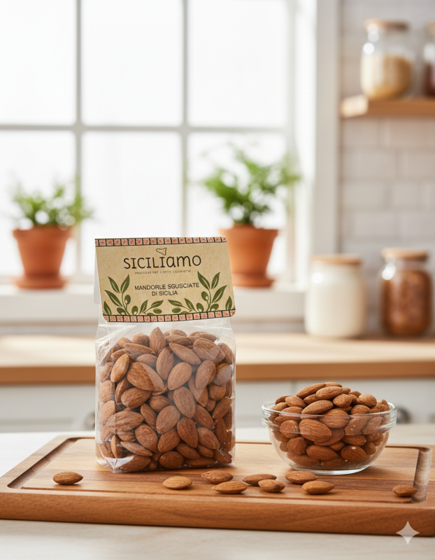 Coltivate nel cuore della Sicilia, le mandorle sono un ingrediente versatile e nutriente, perfetto sia come snack sano che come componente di ricette dolci e salate tipiche della tradizione mediterranea.