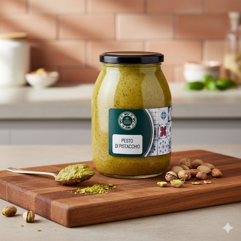 Il Pesto di Pistacchio 1 kg è una crema di pistacchio artigianale dal gusto intenso e aromatico, preparata con pistacchi sgusciati (65%), olio di semi di girasole, sale e pepe bianco, senza additivi artificiali. Questa salsa cremosa esalta i sapori della cucina mediterranea ed è perfetta per chi ama i sapori autentici della tradizione italiana.